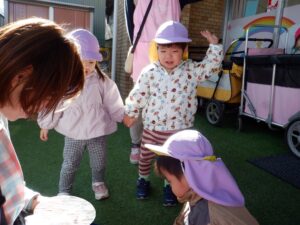 澄んだ空気が気持ちのよい季節になりましたねおひさまの光を浴びて、子どもたちは毎日ニコニコ笑顔で過ごしています