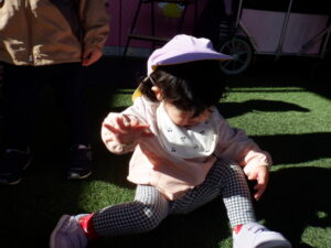靴下や靴、帽子、小さな手で一生懸命に触れようとする姿、その意欲を大切に見守っています😊