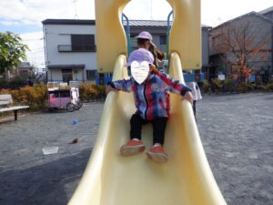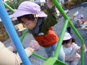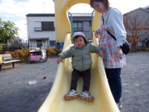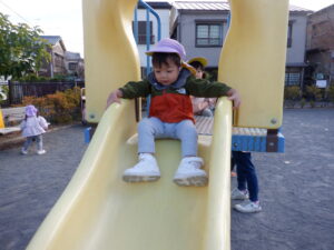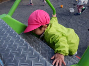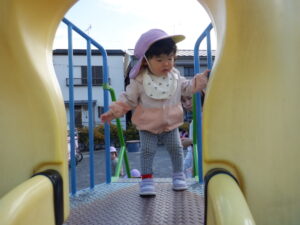 こちらは滑り台!小さな足で一生懸命階段をのぼって…