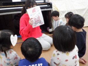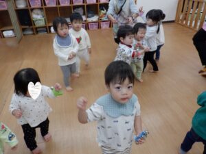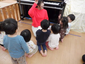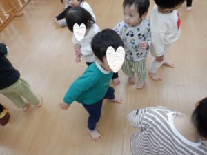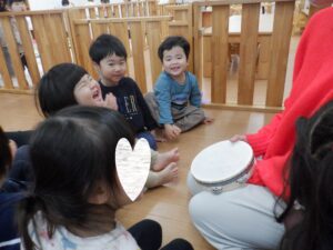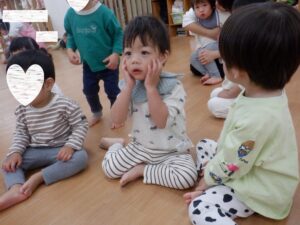 静と動が分かりやすいまゆか先生のリトミック。静のタイミングになるとこんな風にスッと集まってくれます🥰