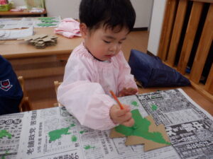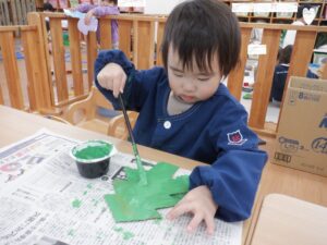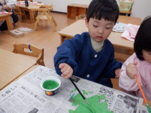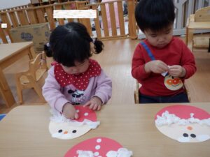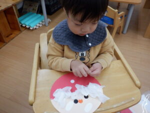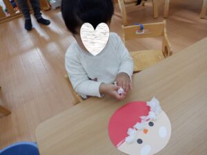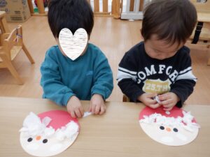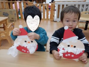 ちゅうりっぷ&すみれ組はまだ見ぬサンタクロースのおひげをペタペタ🎅もしゃもしゃおへげのサンタクロースもいれば