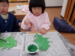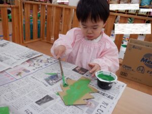ひまわり組が作ってくれているのは、週明け月曜日にある地域の合同クリスマス会に参加してくれるねむの木北加瀬保育園のお友だちとシニアの方々へのプレゼント🎄