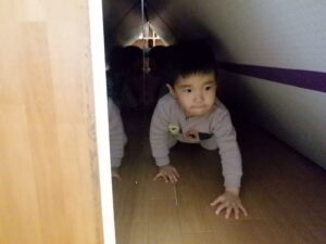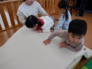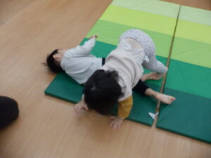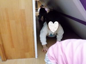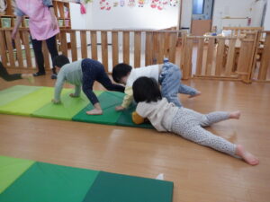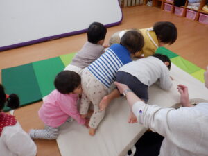 トンネルくぐりは、狭い場所を通ることで自分の体のサイズ感を把握し、手足や体幹を協力させながら動かす経験を通して、全身の使い方が学べ、自己肯定感の向上にもつながります。
