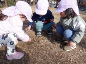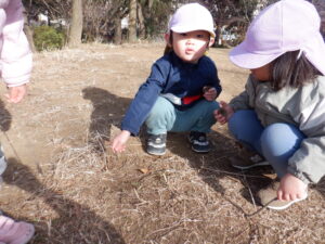 お山に着くなり、ひまわり組のお友達の探検がスタート!