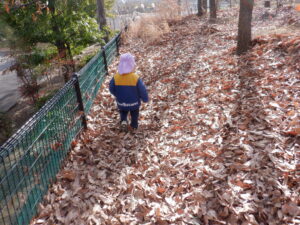 落ち葉を両手いっぱいに集めて「せーのっ!」と空にまくと、ひらひら舞う葉っぱのシャワー🚿🍂