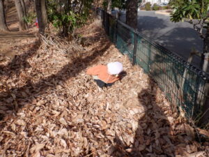 公園のお山は、すっかり落ち葉で“ふかふかコート”を着たようにこんもり🍂