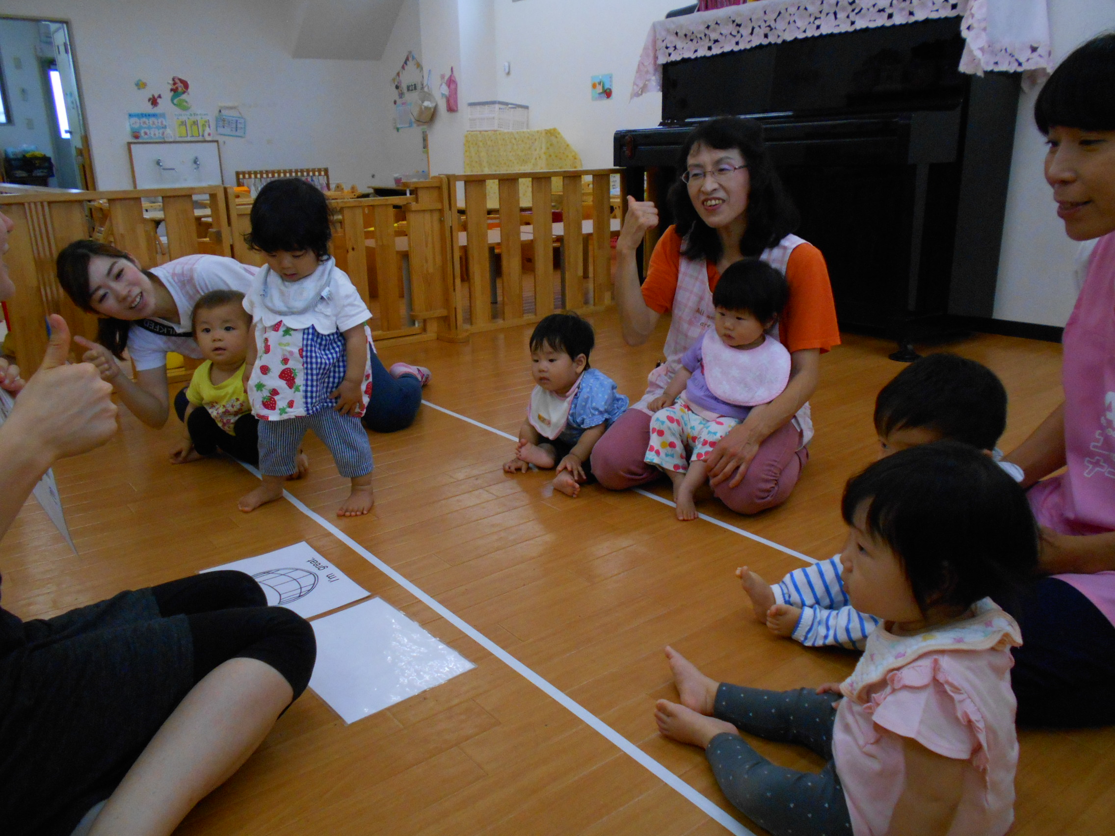 ひよこ組さんデビューに伴い、きりん組・ぱんだ組さんは合同に。