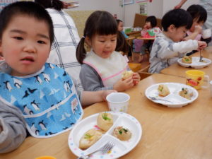 「お豆腐は何から出来てる?」に「大豆~!」と、すんなり答えるお友達☺すご~い✨