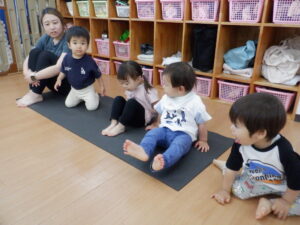 「準備するからここで待っていよう!」とりな先生、みんな待てている😭道具が出てくるとやりたくてうずうず前に出たくなるけど、がまん・・がまん・・。