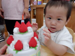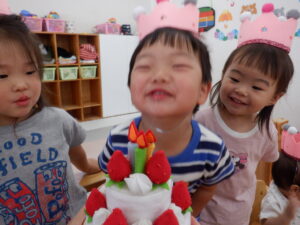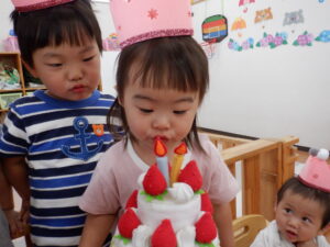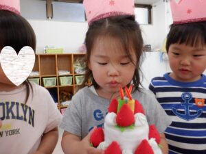 みんなろうそくふぅ~をしたあとはいちごをぱくっ🍓