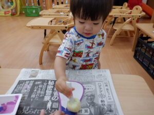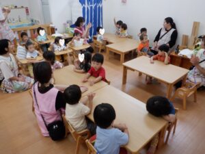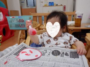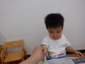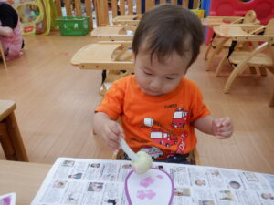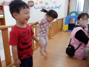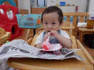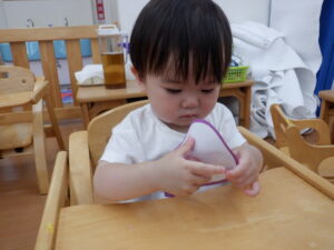 そろそろ給食に時間だからかな?「これ、食べられる?」と聞きたそうなRくんでした(笑)