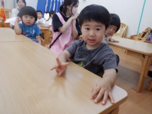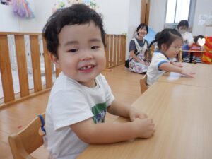 カメラを向けると固まってしまうRくんが今日は張り切って「はーい!!」