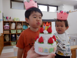 最後にはケーキが出てくるとおやつで沢山食べたのにまだまだ食べたそうなみんなでした♡