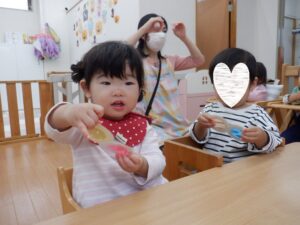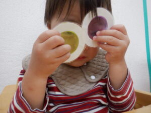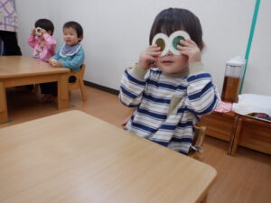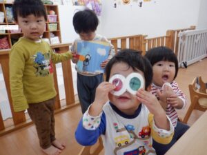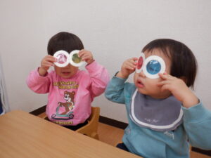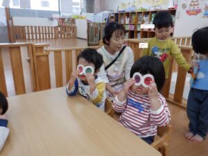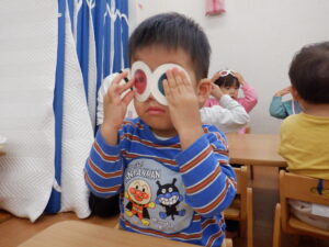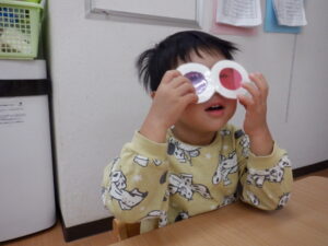 お当番さんはメガネの部分がスケルトンになっていてお空の色がちゃ~んとメガネの色になるシアターを演じてくれています🥰