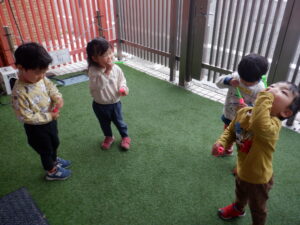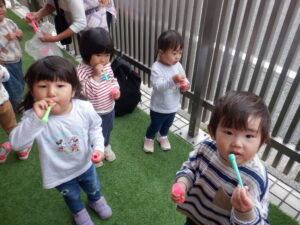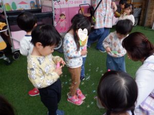 お天気が思わしくない今日はシャボン玉でリフレッシュ♪