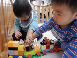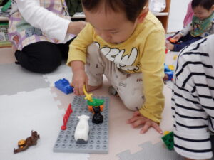 動物やお人形、車があるとごっこ遊びに発展しやすく