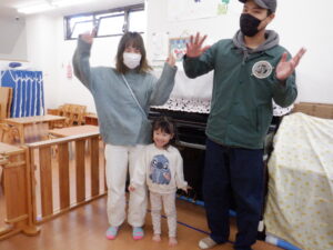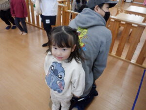 本日はお忙しい中保育参加にご参加いただきありがとうございました。楽しい時間を過ごして頂けましたか?保護者の方と一緒で嬉しそうなお顔だったり、ちょっと甘える様子だったりがみられほっこりする時間でした♡一つひとつイベントが終わっていくたびに、卒園に近づくようで寂しさも感じるこの頃ですが、まだまだ楽しい時間をみんなと過ごせるように考えていきたいと思いますので、よろしくお願いいたします。