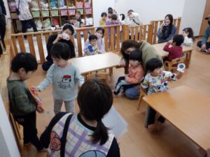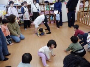 今日はひまわり組さんの保育参加の日です(*^-^*)ちゅうりっぷさんの保育参加の日から楽しみにしていました♡まずはみんなの大好きなこのダンスから♪ちょっと季節外れですがみんなが大好きなグーチョキパーでパンプキン!!