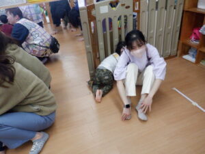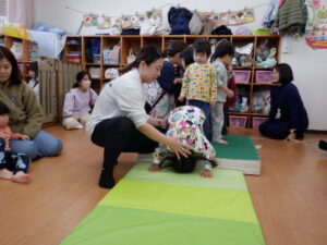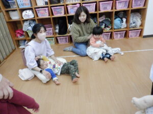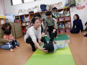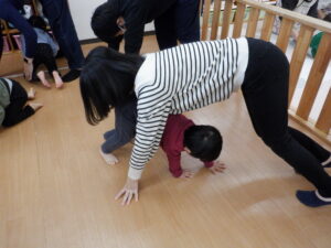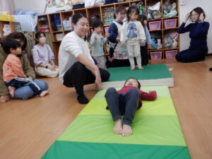 お次はりな先生の体操です!今日は親子体操♡おなかとおなかをくっけて…