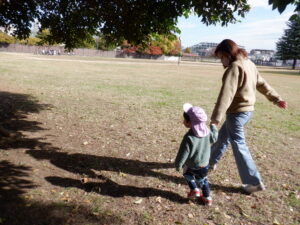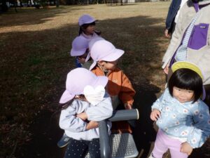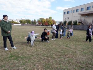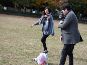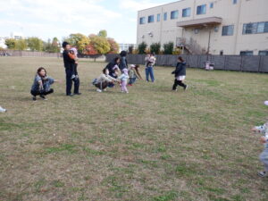 体操の後は芝生公園にも行きました🎵ここでは入り口からパパママのところまでよーいドン!みんないつもより速ーい!