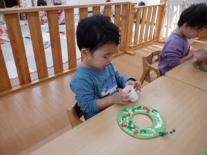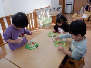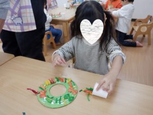 リースに貼る飾りは、 子どもたち自身が好きなものを選びました