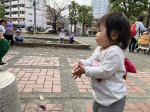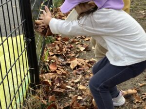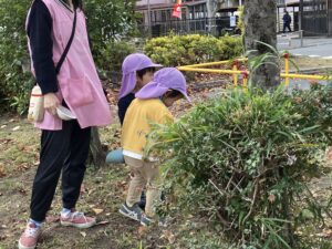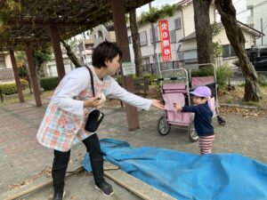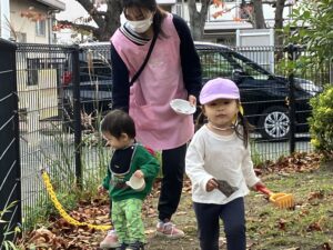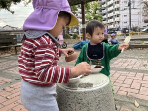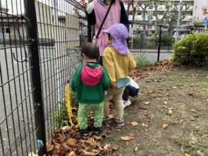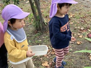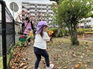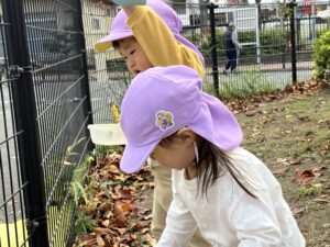 落ち葉を「はい、どうぞ!」とお友だちにプレゼント🎁