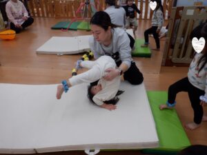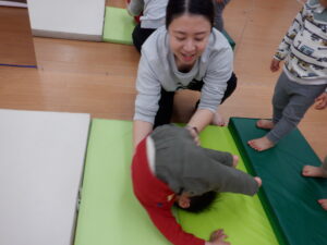 前転の練習では「くるん!」と回るたびに大歓声✨