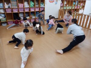 準備運動の段階から楽しさがあふれていて、これから始まる活動への期待が高まります⤴🎶