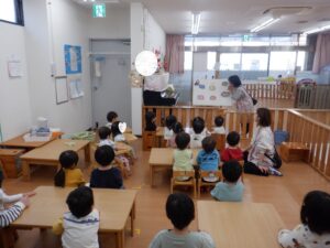 出し物はみどり先生の「いろいろ温泉♨」動物さん達が温泉に入るとあら不思議…!!動物さんも青やピンクに大変身!