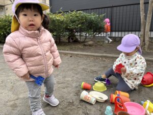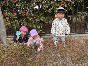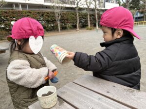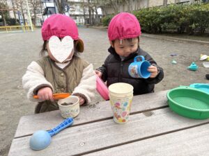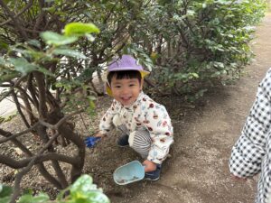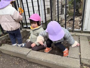 こちらはお風呂ごっこかな?なんだか囲われてて特別感♪遊具がなくても自然と遊ぶ場所を見つけられるのが子ども達のすごいところ✨