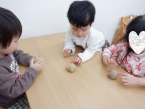 初めて「ちょっとした調理」に挑戦!!まずは3つのじゃがいもを触ったり匂いをかいだりしながら比べてみました👀