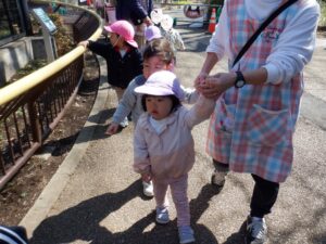 でも子どもたちはというと、先生やお友達と手をつないだらご機嫌🎶