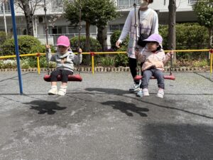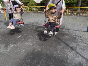 パパやママと一緒にブランコの練習をしていただけると嬉しいです♡本当なら…気が済むまで乗っていたいみんなですが、保育園の活動の中ではどうしても「10」を数えるしかなく…。十番を待つ練習にはなりますが「満足!」この経験もしてほしい🥰