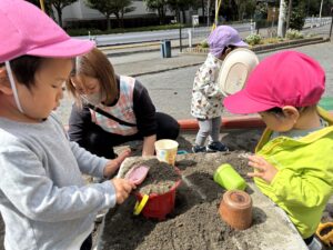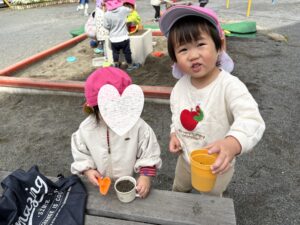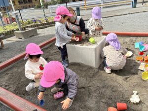 じーっと座ってお砂遊びに励むみんなです🥰