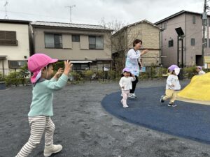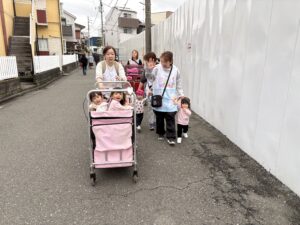 午前中にお昼寝が必要なお友だちが少ないので早速お外にも👟みんなでぐるっとお散歩をしてきました♪