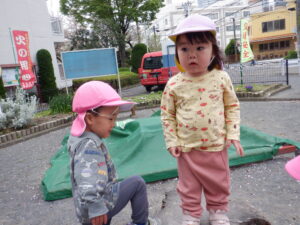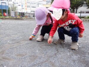 お砂にお絵描きも、お友だちと一緒に!何となくお顔に見える…?