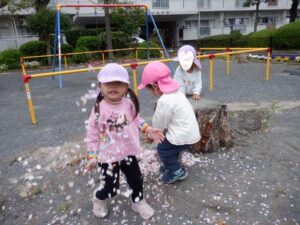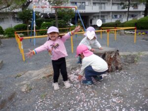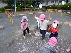一生懸命に桜の花びらを集めて「いぇーい!!」と撒くと…