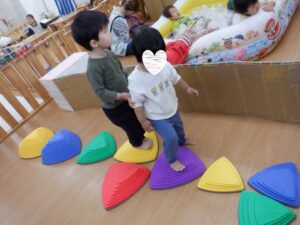 バランスストーンはそこに置いてあるだけでも簡単な運動ができてバランス感覚が養われます✨