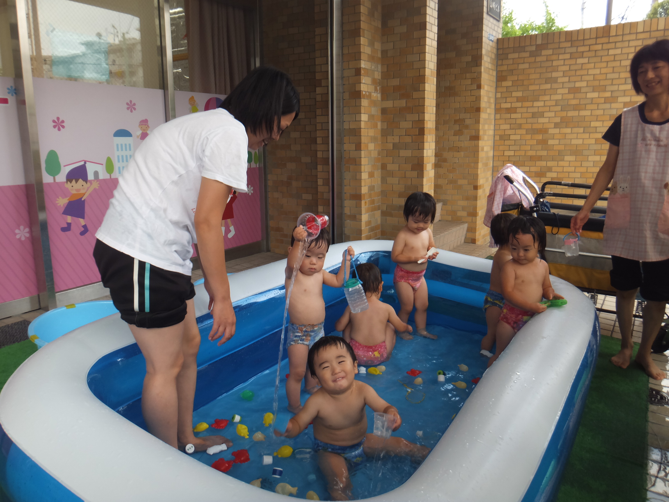 ぱんだ組・うさぎ組さんはプール&水遊びを楽しみました!