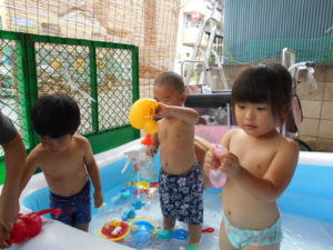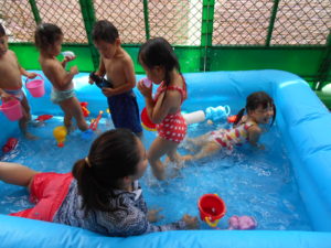 きりん組さんはやっぱりプールに入るとおおはしゃぎ!