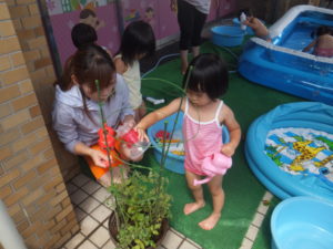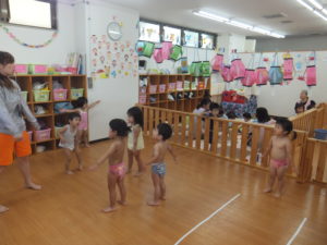昨日まで同様に、朝の会もお給食もこじんまりと、お友だちみんなもどことなく静かな雰囲気で、保育園もまだ夏休みモードです。笑