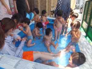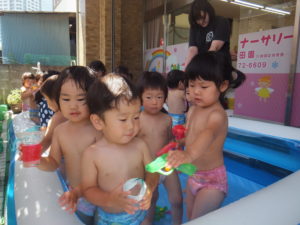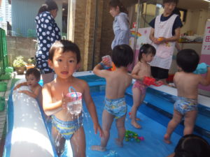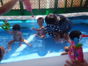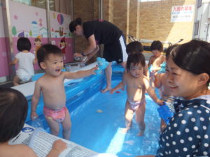楽しく水に触れ、でも暑さが負担にならないよう、無理のない保育をしていきたいと思います。