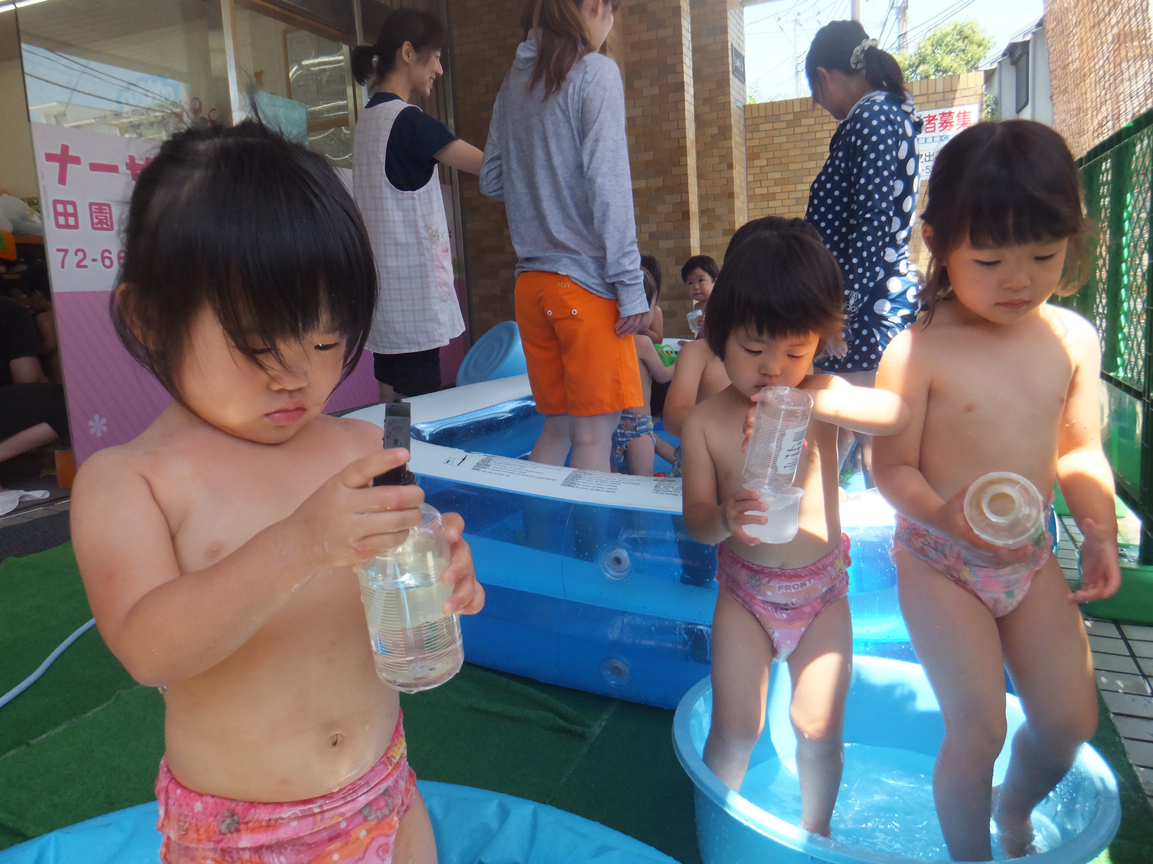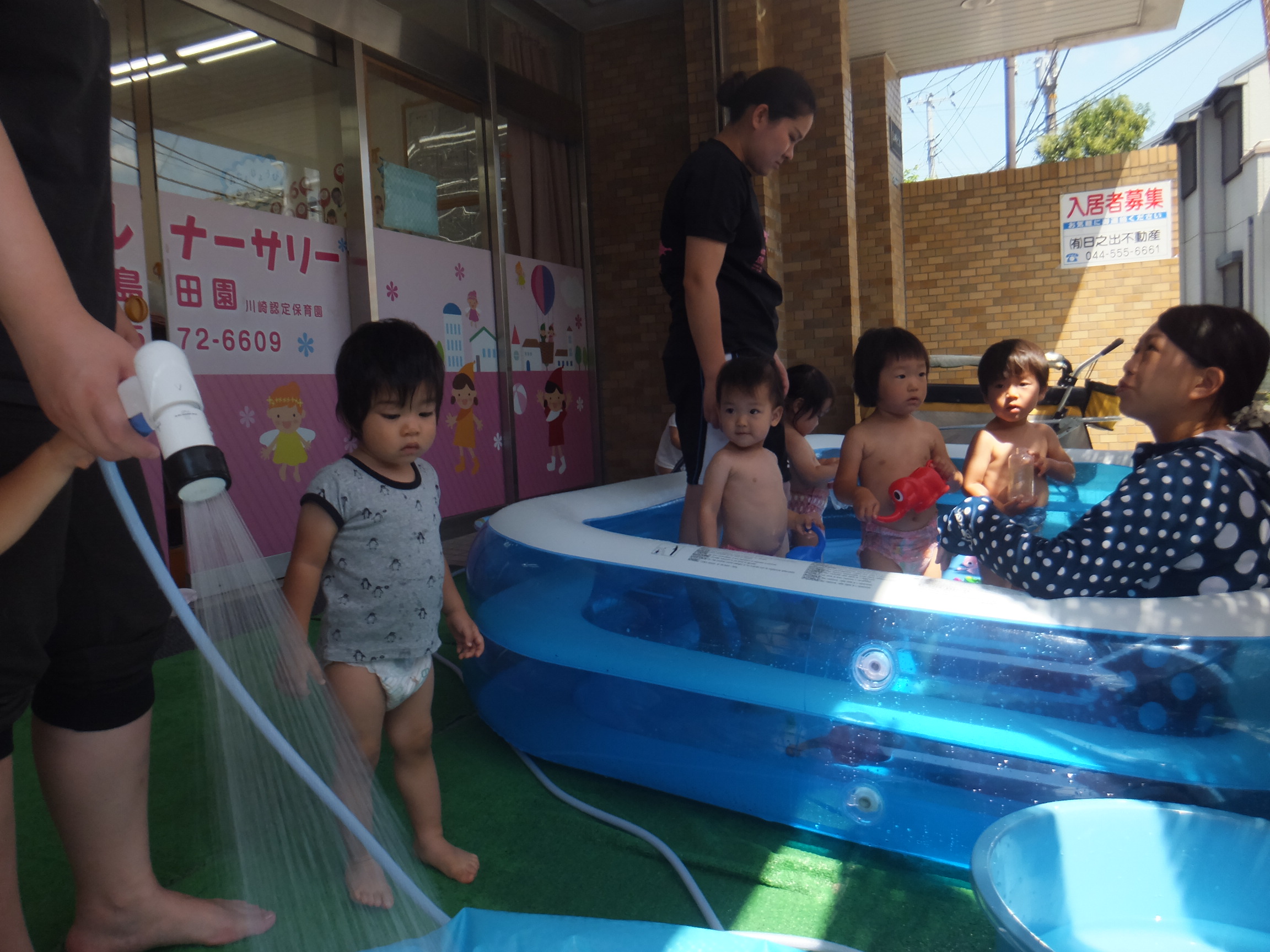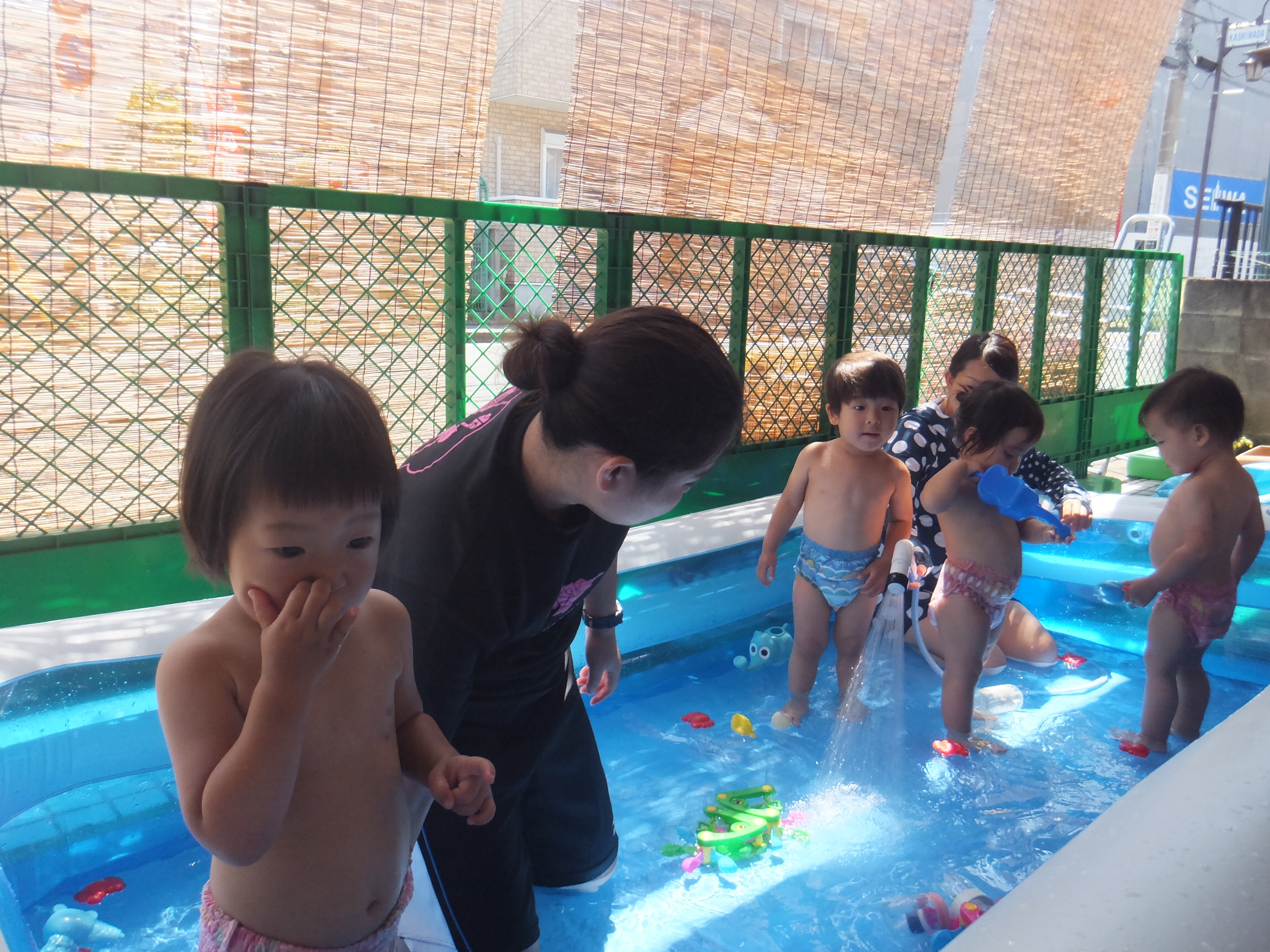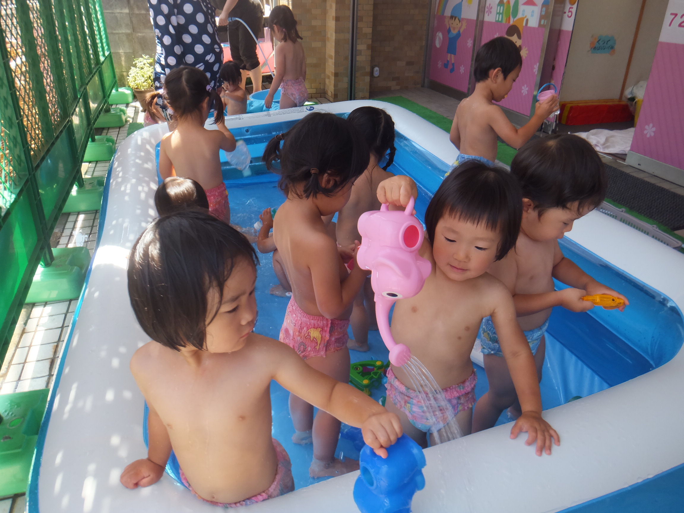 楽しく水に触れ、でも暑さが負担にならないよう、無理のない保育をしていきたいと思います。