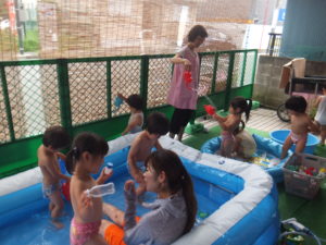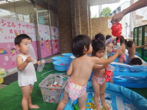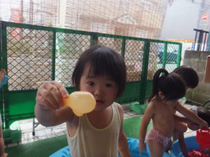 水遊びが出来ないお友達とまじって、いろいろなおもちゃでたくさん遊びました♪