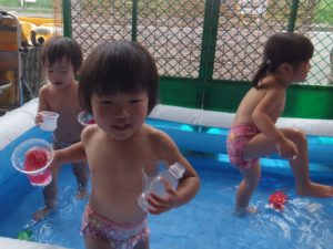 お盆前の週末金曜日、既に少し早いお休みに入ったお友だちもいて、保育園も若干の夏休みモード(微笑)