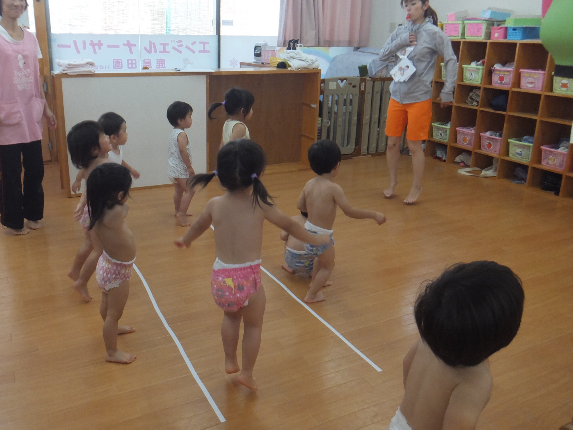 お盆前の週末金曜日、既に少し早いお休みに入ったお友だちもいて、保育園も若干の夏休みモード(微笑)