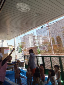汗をかきかき💦登園すると、涼しいお部屋でしばしの自由時間。