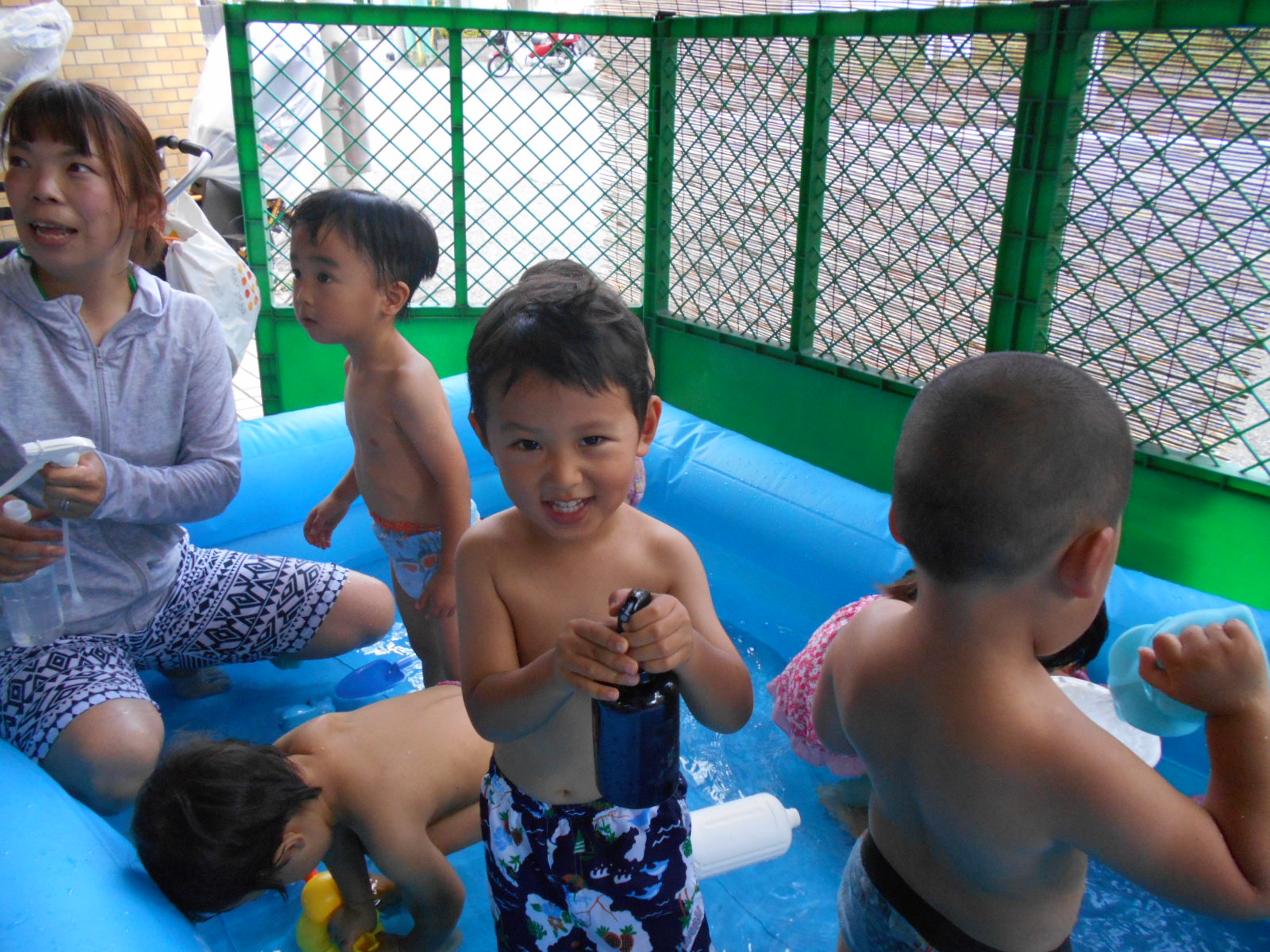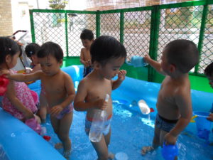 声を掛けると「やだ~~~!」「プール、入らない~!」笑