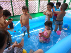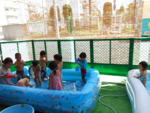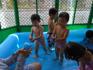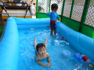 雨続きの先月(お部屋遊び)猛暑続きの今月(プール遊び)だったので、