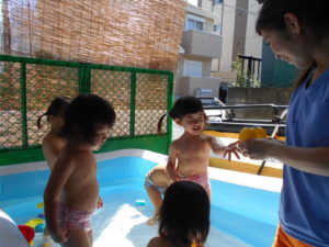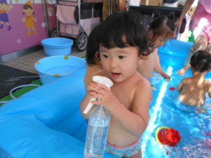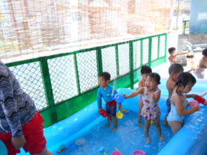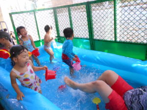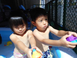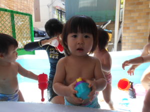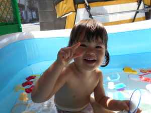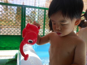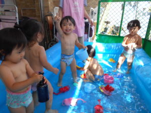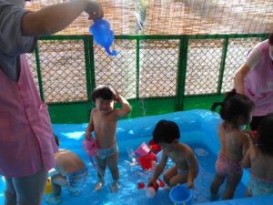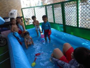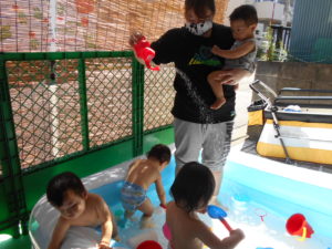 すっかりプール遊びにも慣れたみんなですが、今年は梅雨明けが遅く、プール遊びが出来たのは数えるほど。